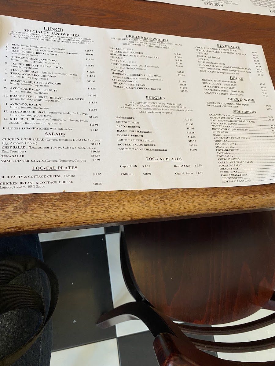 Pop's Cafe Menu